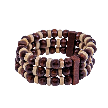 Ett stilrent och rustikt armband med vackert mörkbruna och ljusa träkulor i symmetriskt mönster. Klassisk i uttrycket men långt ifrån tråkig – perfekt som bas i din vardagslook eller som naturnära kontrast till något mer uppklätt.