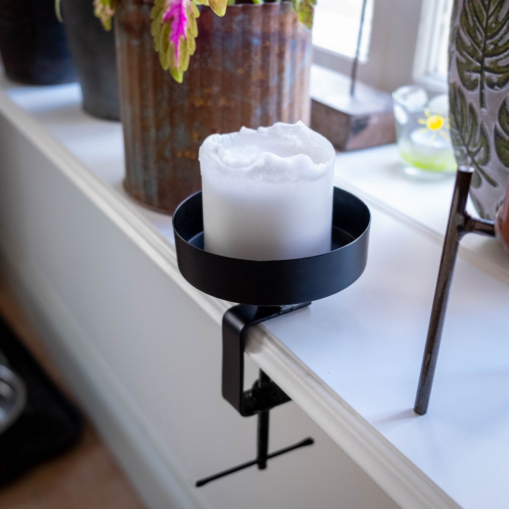 Lämplig för blockljus med en diameter om max 9,5 cm. Kan fästas på en bordsskiva eller liknande yta (max 4,5 cm tjock).