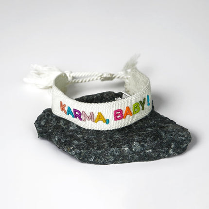 Vävt och broderat armband som är mjukt och skönt mot huden. Med dess livfulla design och fina budskap kommer det här armbandet kommer snabbt att bli en favorit.