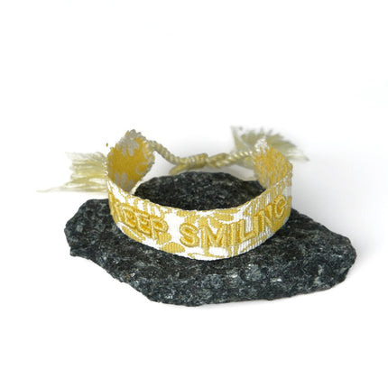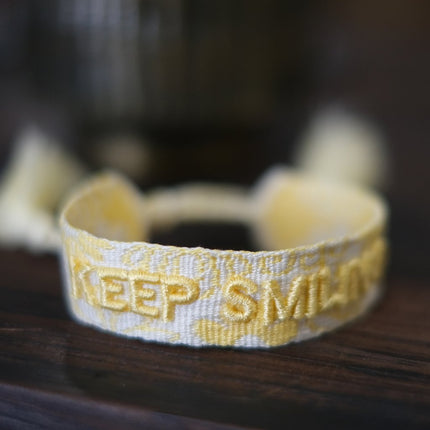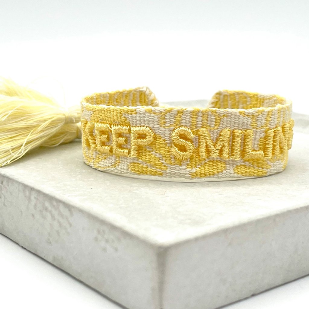 Vävt och broderat armband som är mjukt och skönt mot huden. Med dess livfulla design och fina budskap kommer det här armbandet kommer snabbt att bli en favorit.