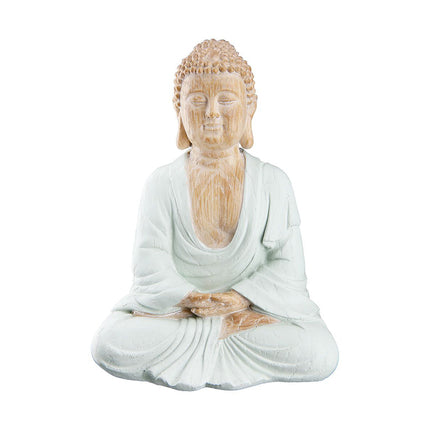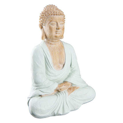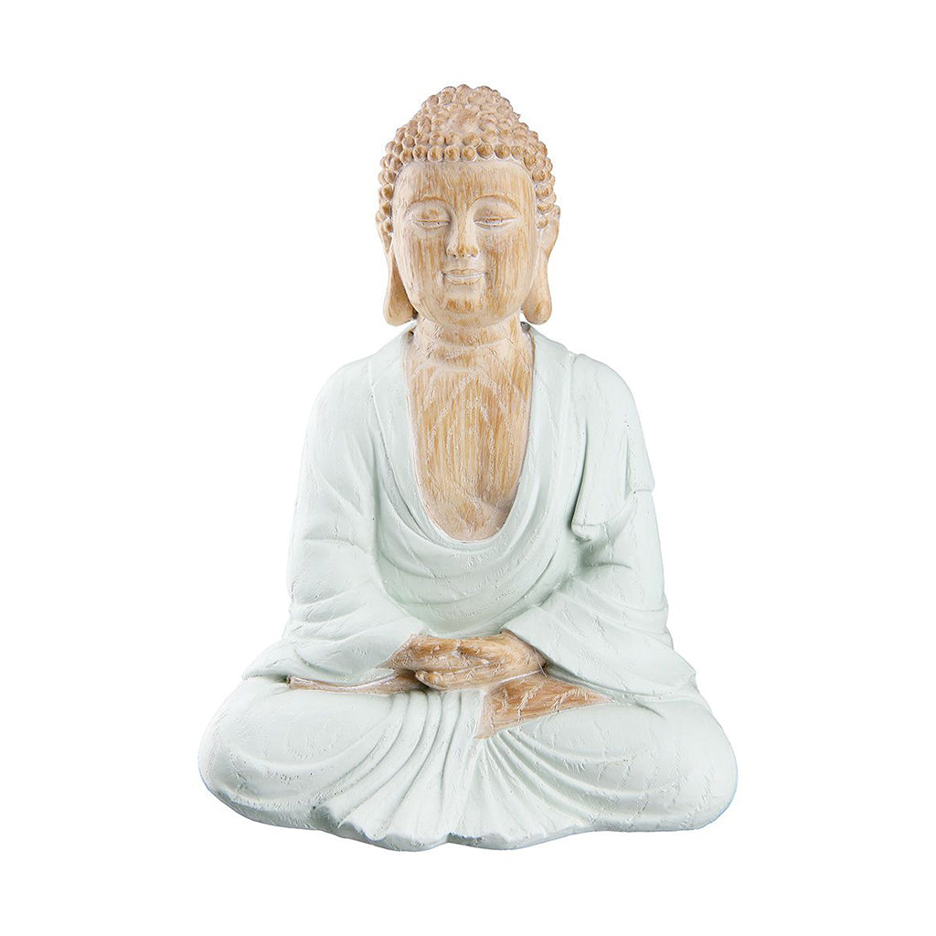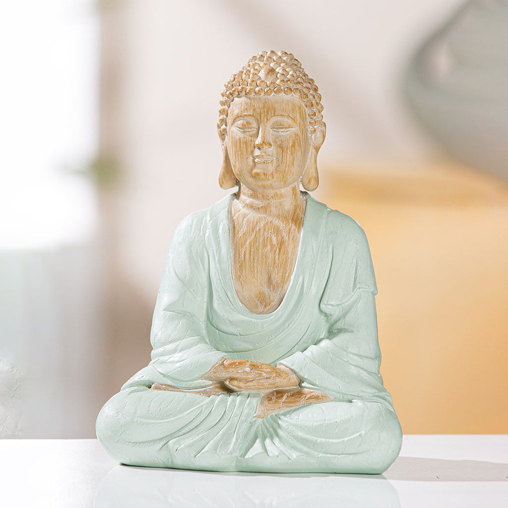 Skapa en lugn och harmonisk atmosfär med denna vackra Buddha-staty i en behaglig och rogivande färg. Den mjuka designen och den fridfulla närvaron gör den till ett perfekt bohemiskt inslag till ditt hem. Enligt buddhistisk tradition placeras Buddha helst med ryggen mot ett hörn, vilket hjälper att skapa en känsla av harmoni och balans.