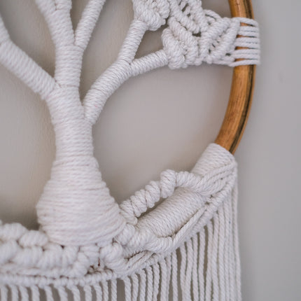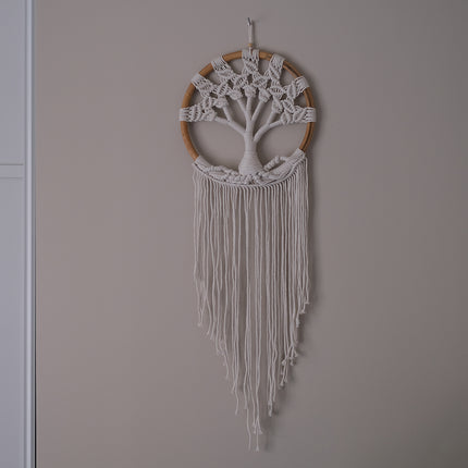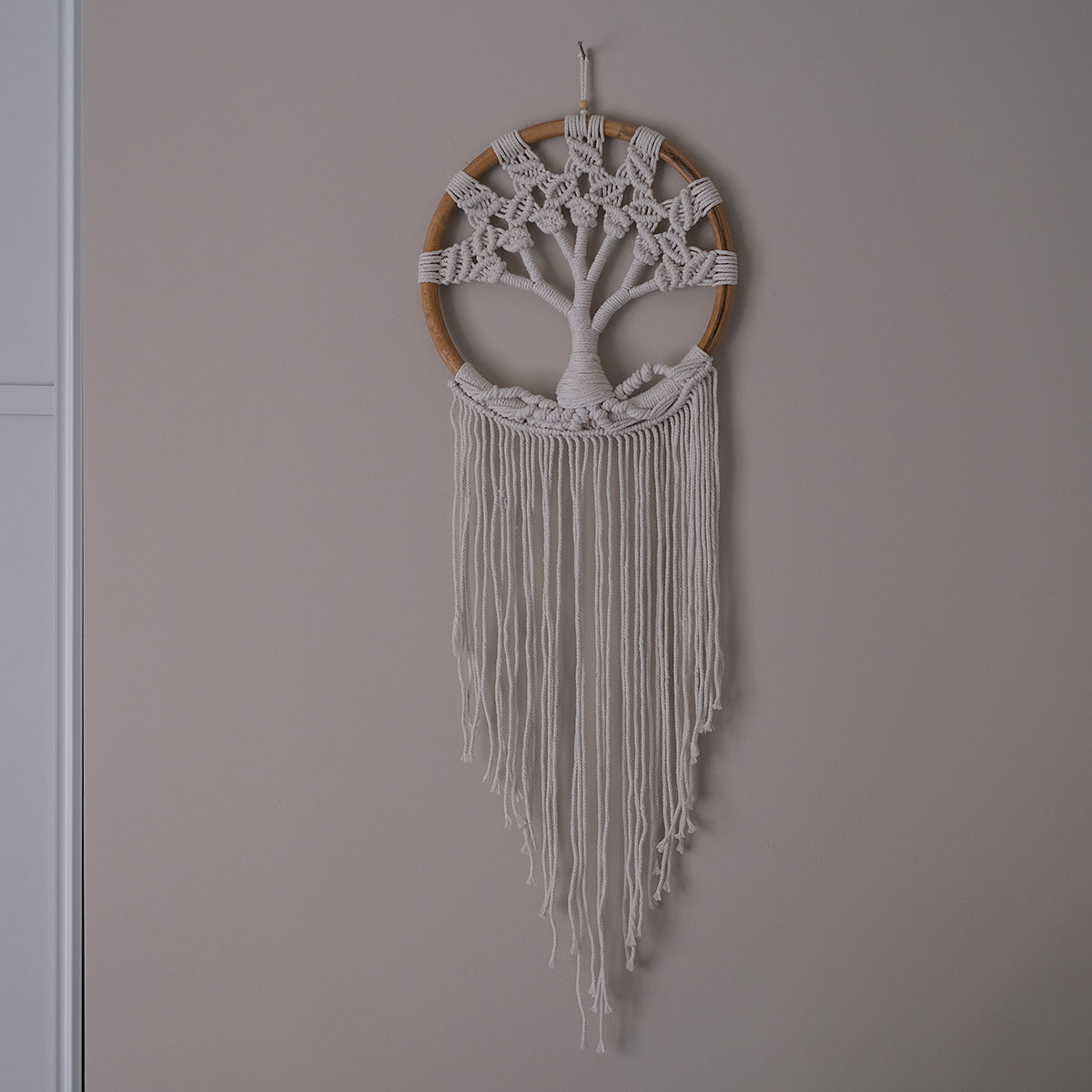 Snygg och väl tilltagen drömfångare med livet träd - tree of life" - vackert knutet runt en träram.