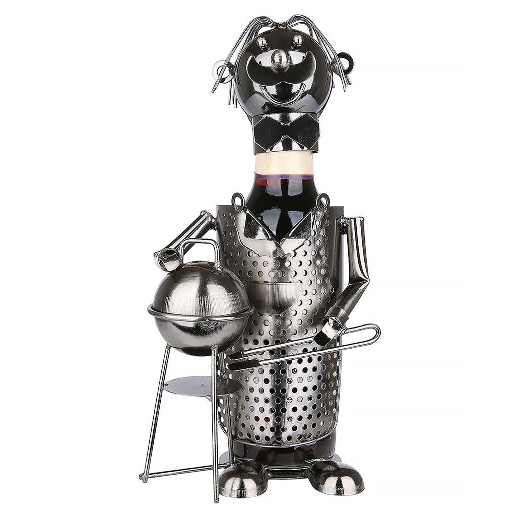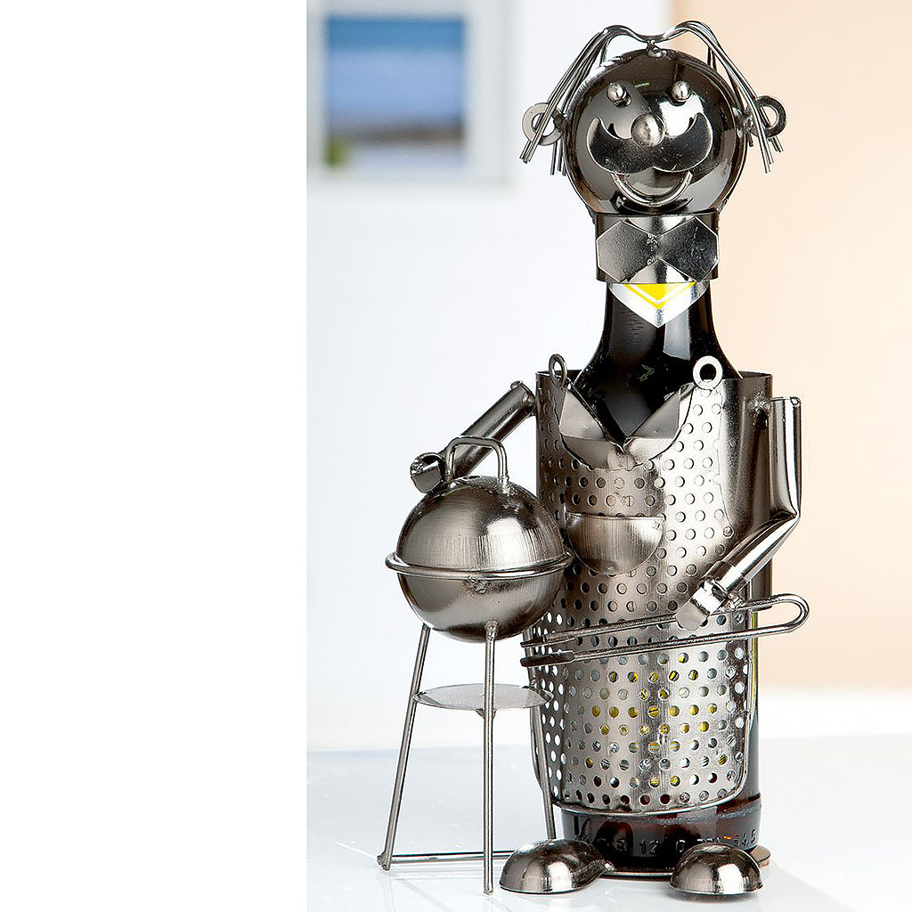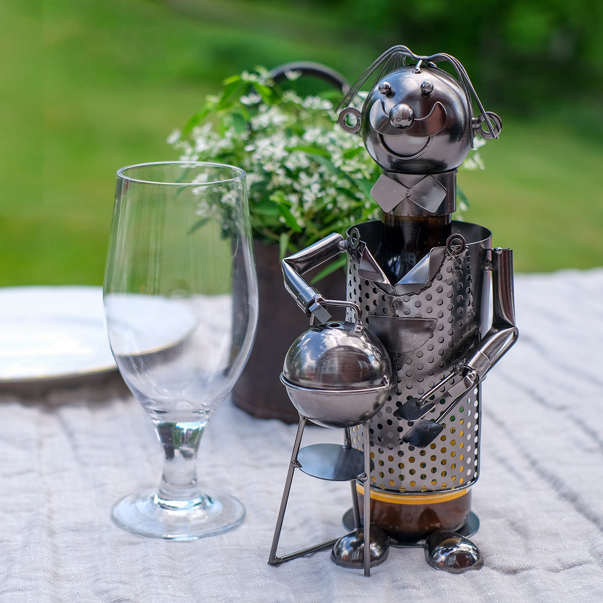 En flaskhållare för den som lever för grillsäsongen! Den här charmiga figuren i metall är ett självklart val för personen som är som lyckligast med glöden i gång, marinaden redo – och ett gott glas i handen. En kul och karaktärsfull present till sommarens grillmästare (eller till dig själv, för all del).