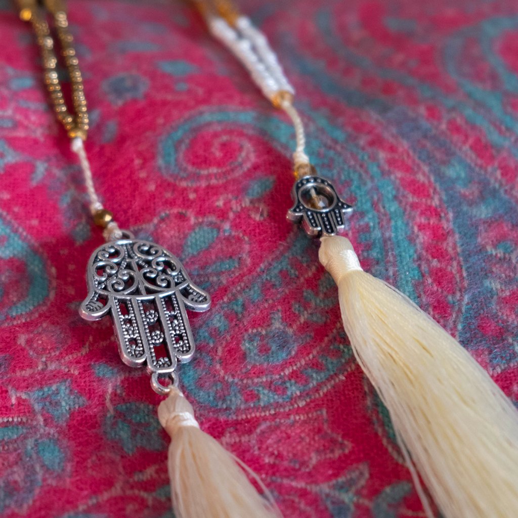 Fatimas hand används flitigt över den indiska kontinenten som symbol på allt från smycken och fordon till dörrar för att hålla ondskan borta. I grunden en muslimsk symbol som används flitigt även av buddhister och hinduer. Inom hinduismen anses fingrarna representera de fem chackran och de fem elementen.