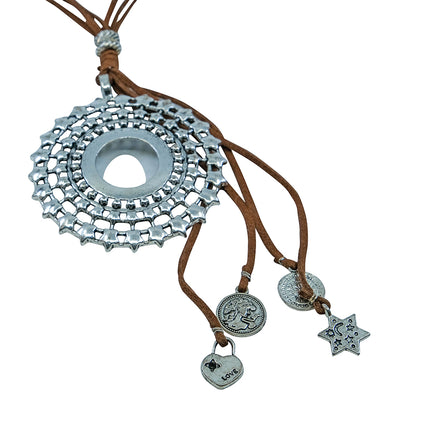 Detaljrikt halsband med läderrem och en härlig boho-känsla perfekt för din personliga outfit. Detta underbara halsband kommer säkerligen att göra ett statement!