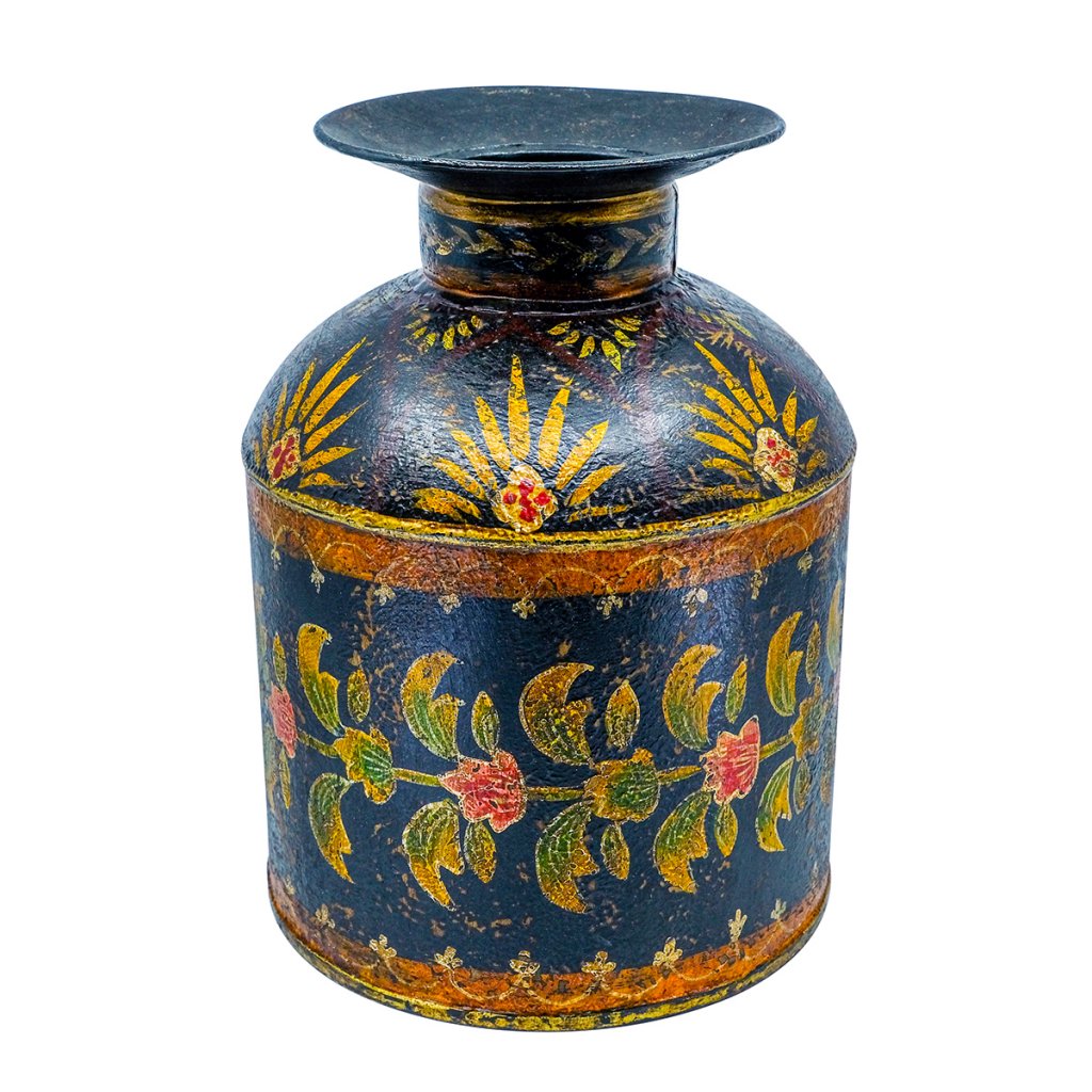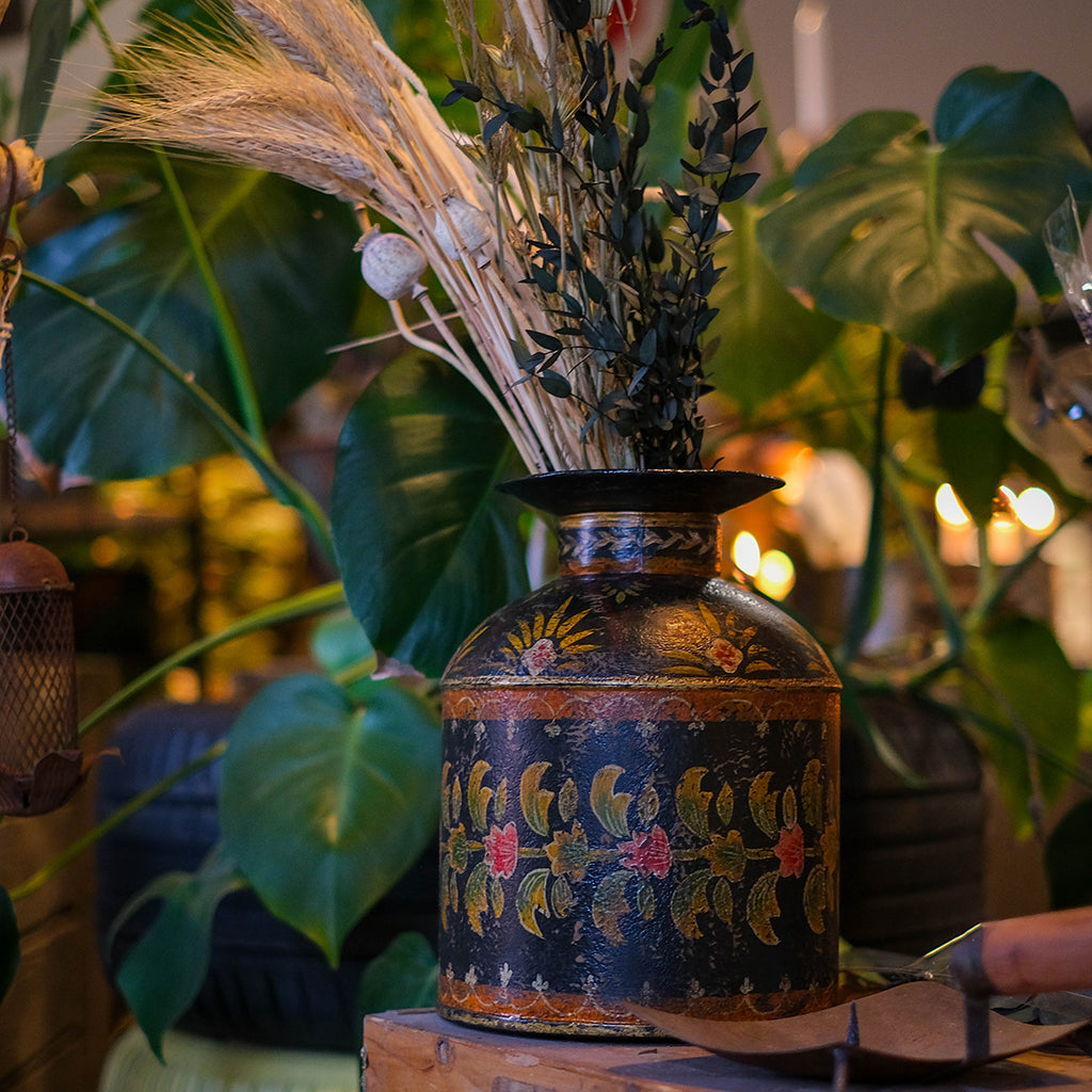 Handmålad metallkruka - svart
