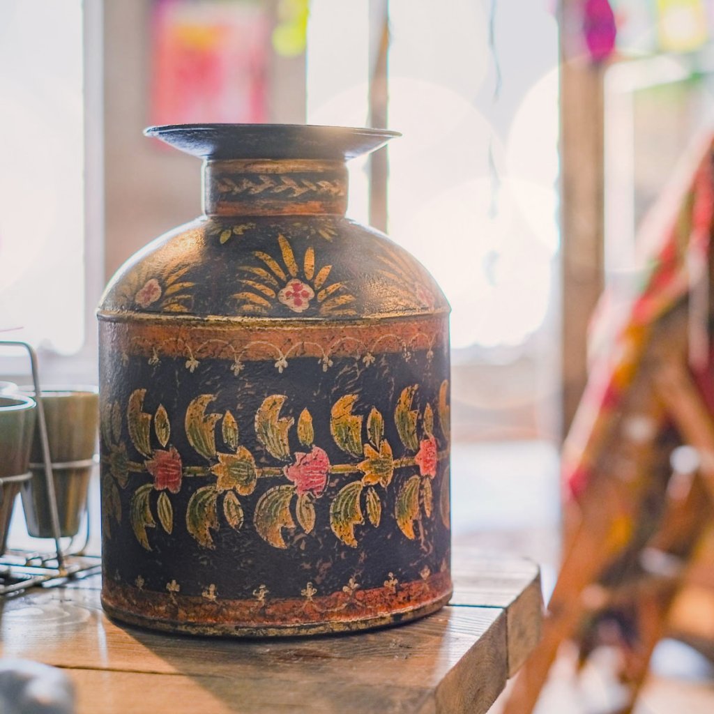 Helt magiskt fina indiska handmålade metallkrukor.