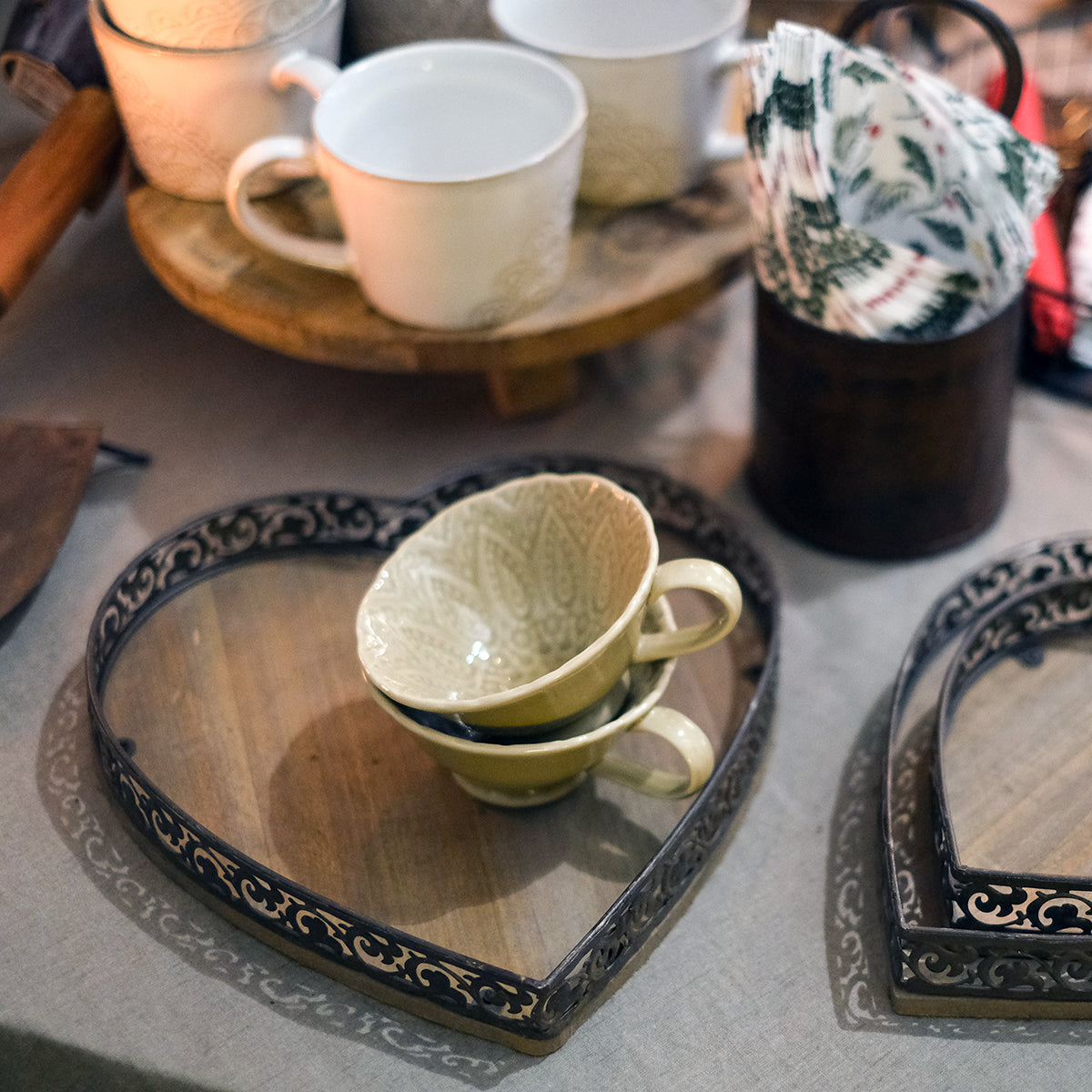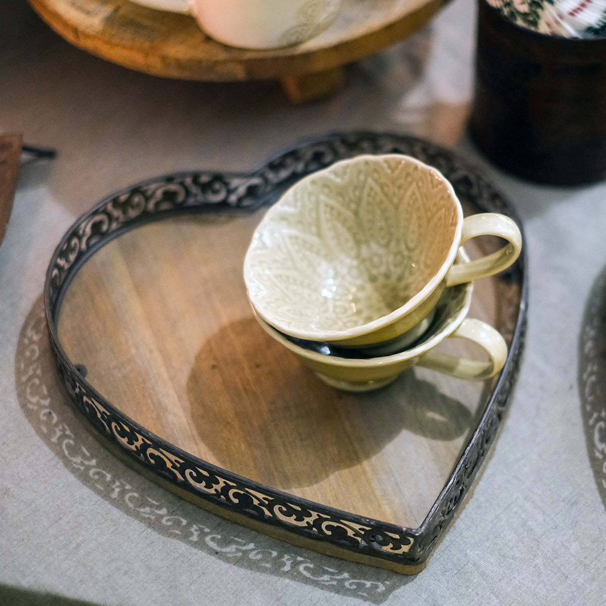 Hjärformad bricka med metallkant