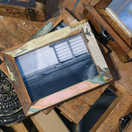 Upptäck vår samling av små indiska fotoramar tillverkade av återvunnet trä, vars härliga färger och känsla gör dem till små konstverk i sig!