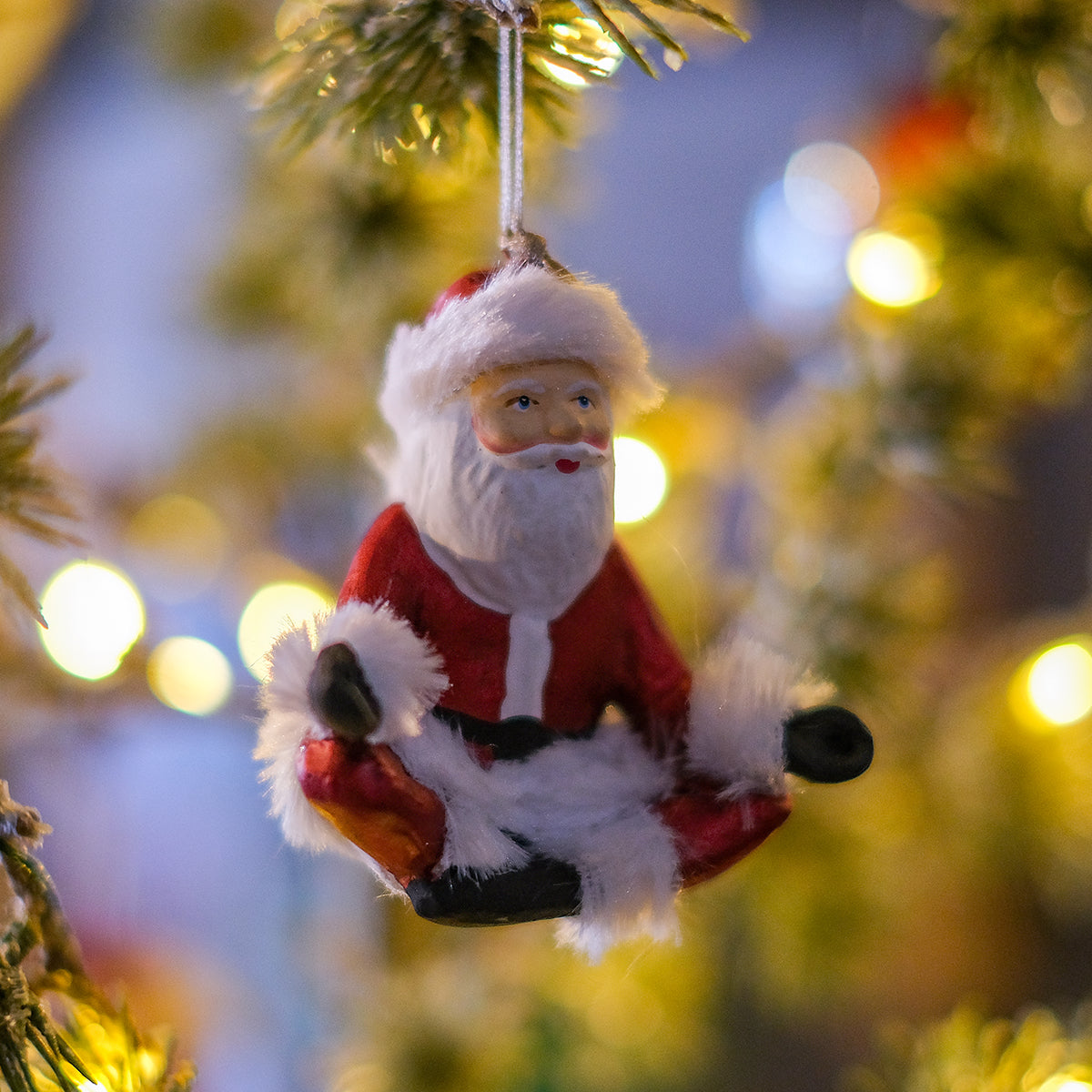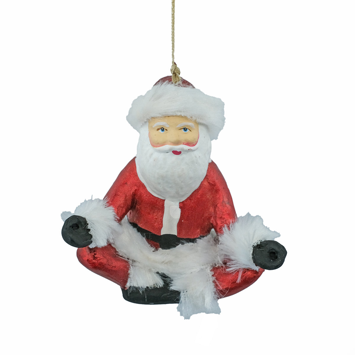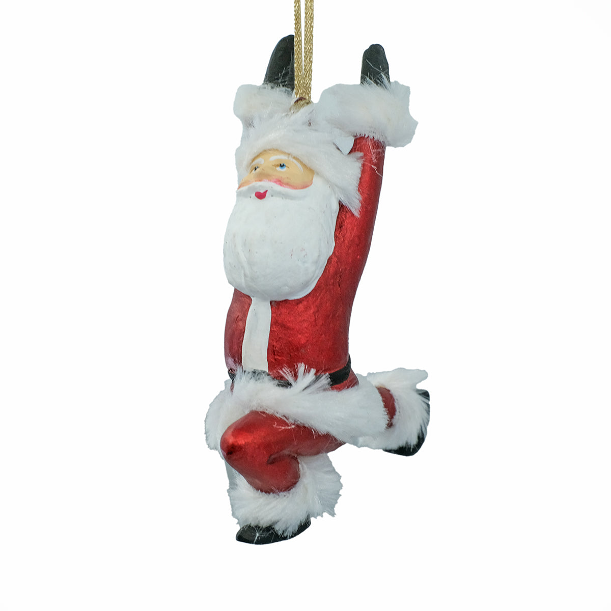 Tre charmiga tomtar som tagit yogan till granen! De nöjer sig alltså inte med att äta pepparkakor - här handlar det om att hålla sig i form inför julnattens stora träningspass med släde och säck. Ett humoristiskt inslag i granen som garanterat lockar fram ett leende mitt i julefriden.