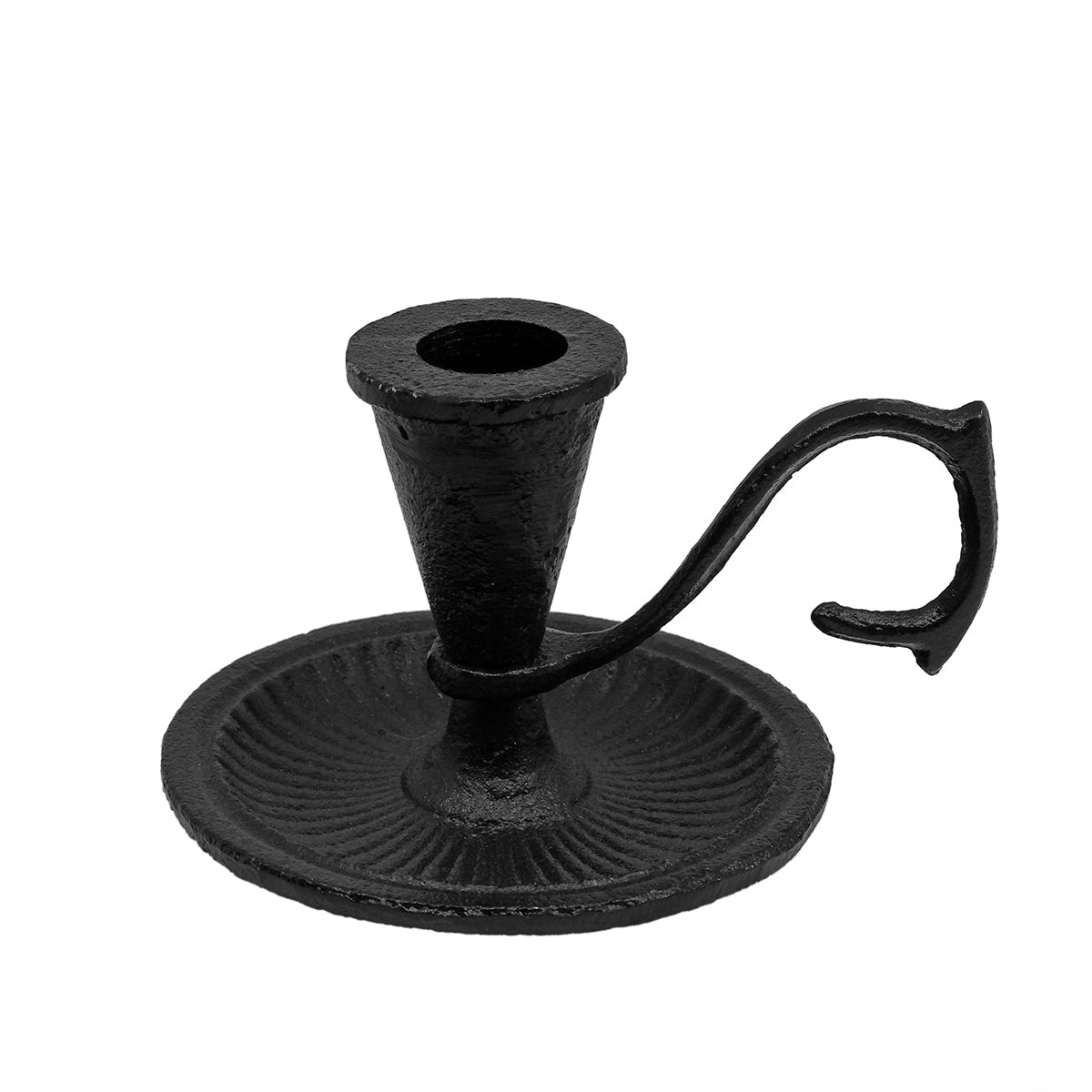 En tidlös kammarljusstake i svart gjutjärn, med dekorativt handtag och stabil fot. Formen är inspirerad av klassiska nattljusstakar, perfekt att bära med sig eller placera på sängbordet, hyllan eller middagsbordet. Den råa ytan i kombination med det enkla uttrycket gör den till en vacker kontrast i både modern och lantlig inredning.