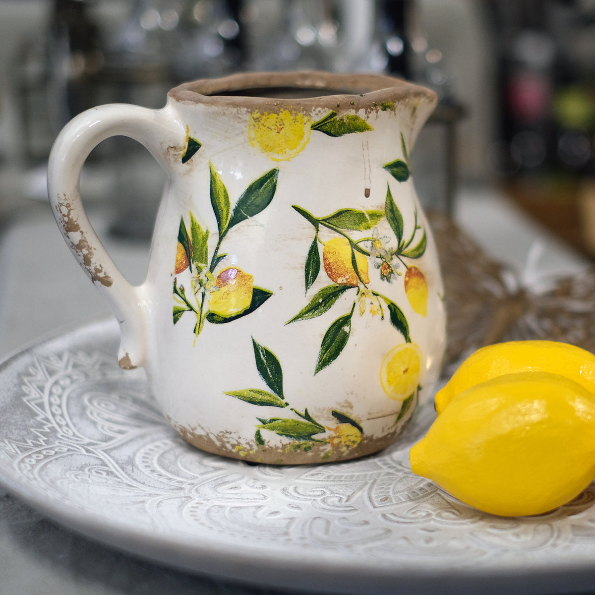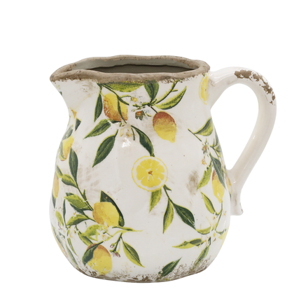 Supermysig kanna i stengods med härligt mönster med citroner.