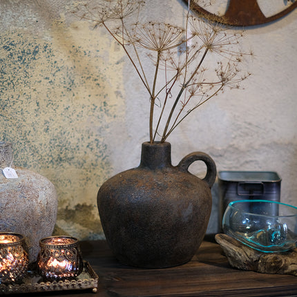 Denna vackert formgivna keramikvas är både en stilren och praktisk inredningsdetalj, med ett elegant öra som ger den både funktion och karaktär.
