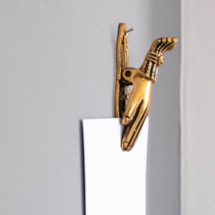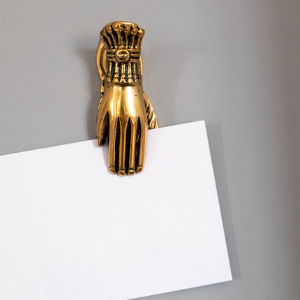 Fantastisk dekorativ mässingfärgad klämma utformad som en hand. Sååå snygg tycker vi!