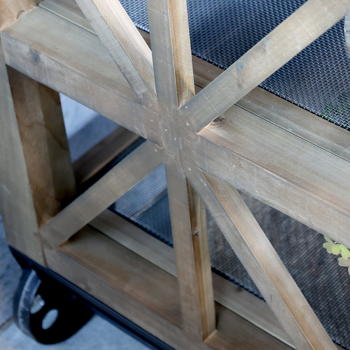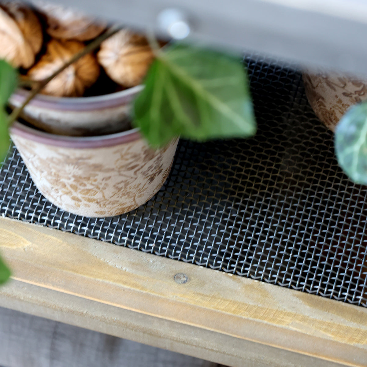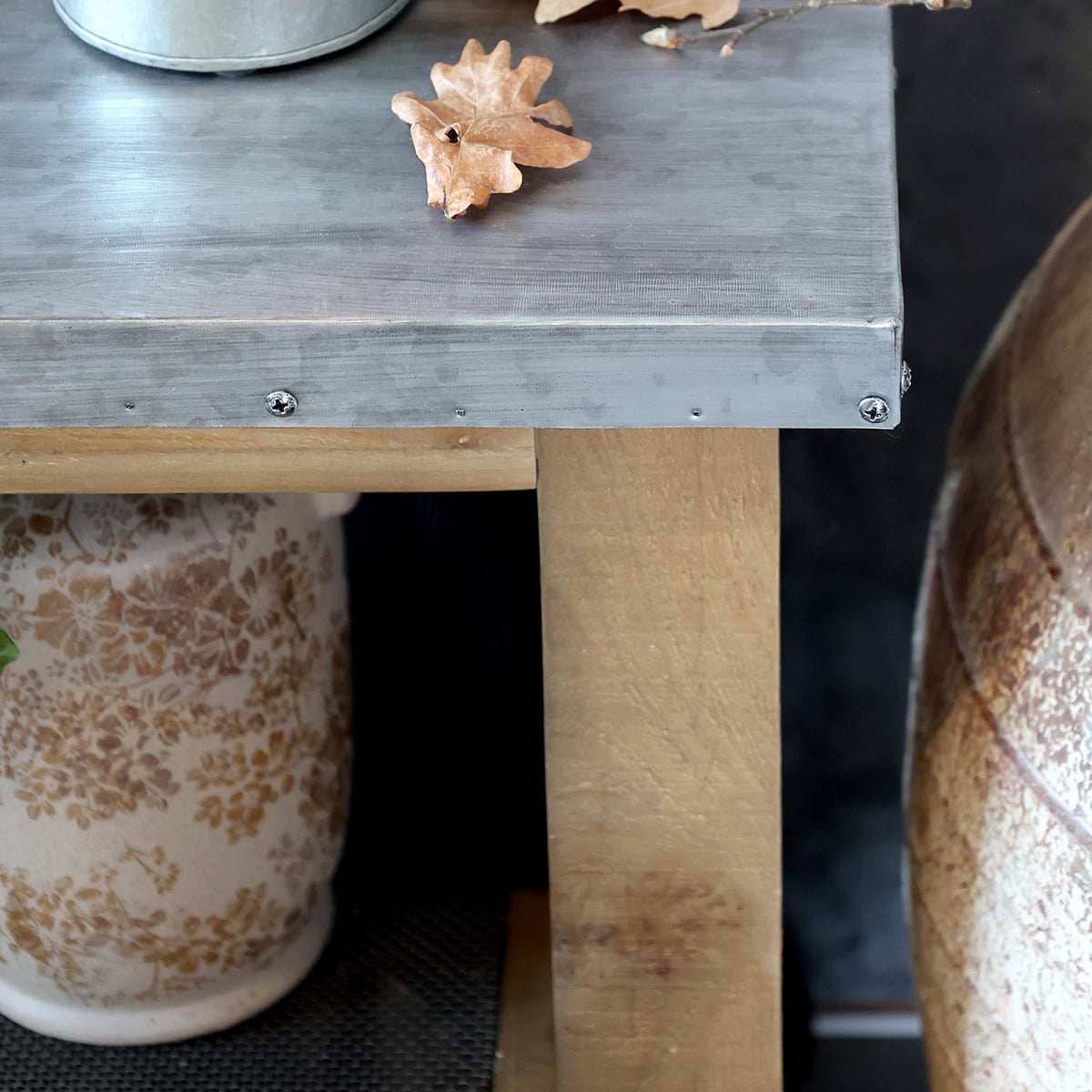 Den här köksön är redo att rulla in och ta plats - både stilmässigt och praktiskt. Med en rejäl skiva i zink och stabil stomme i granträ har den både industriell charm och gedigen känsla. Hyllplanen i metallnät gör den perfekt för förvaring av allt från kokböcker till kastruller, eller varför inte en samling snygga burkar?