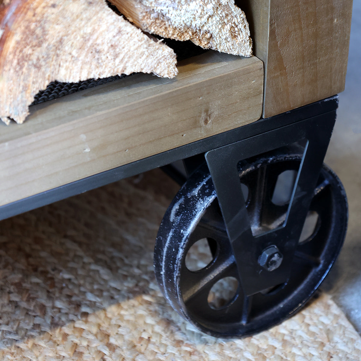 De fina järnhjulen ger karaktär och gör den enkel att flytta vid behov - men se upp med för tunga lass, den är inte gjord för att köra runt vikter över 30 kg. Oavsett om du använder den som extra arbetsyta, serveringsbord eller bara för att ge köket en dos rå, rustik estetik - den här ön levererar!
