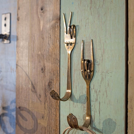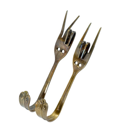 Set med 2st tuffa krokar tillverkade av gamla gafflar. Du får leta länge för att hitta en mer originell krok!