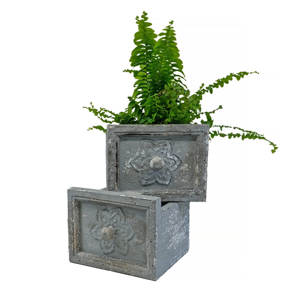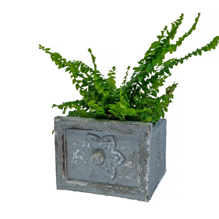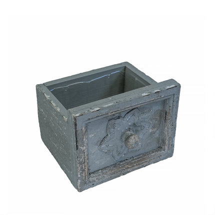 En vacker kruka i form av en liten trälåda med en fantastisk antik patina. Perfekt för mindre växter eller som en charmig förvaring i hemmet. Varje exemplar har sin egen unika prägel och variation i utseendet förekommer, vilket ger den en autentisk och åldrad känsla.