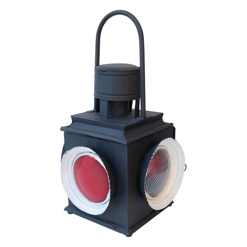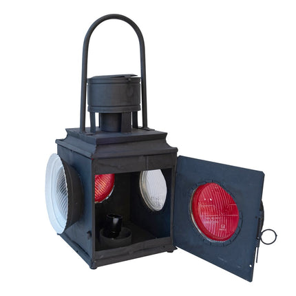 Gamla indiska järnvägslyktor som restaurerats. Den gamla oljelampan har ersatts med en elektrisk lampa.