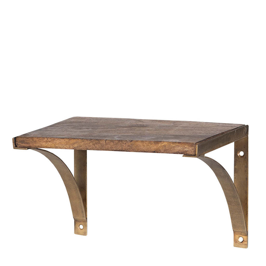 Med sina väggfästen i antik mässing och hyllplan i vackert mangoträ får du en hylla som inte bara är funktionell, utan också en stilfull detalj i ditt hem.
