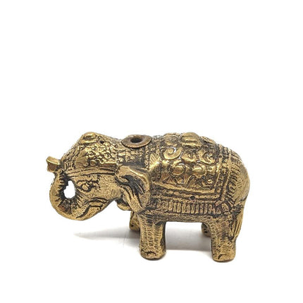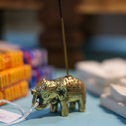 Denna charmiga rökelsehållare i form av en elefant är handgjord i Indien och tillverkad i brons. Med sina detaljerade mönster och symboliken bakom elefanten – som ofta förknippas med visdom, styrka och skydd – blir den både en vacker inredningsdetalj och en praktisk hållare för din rökelse.