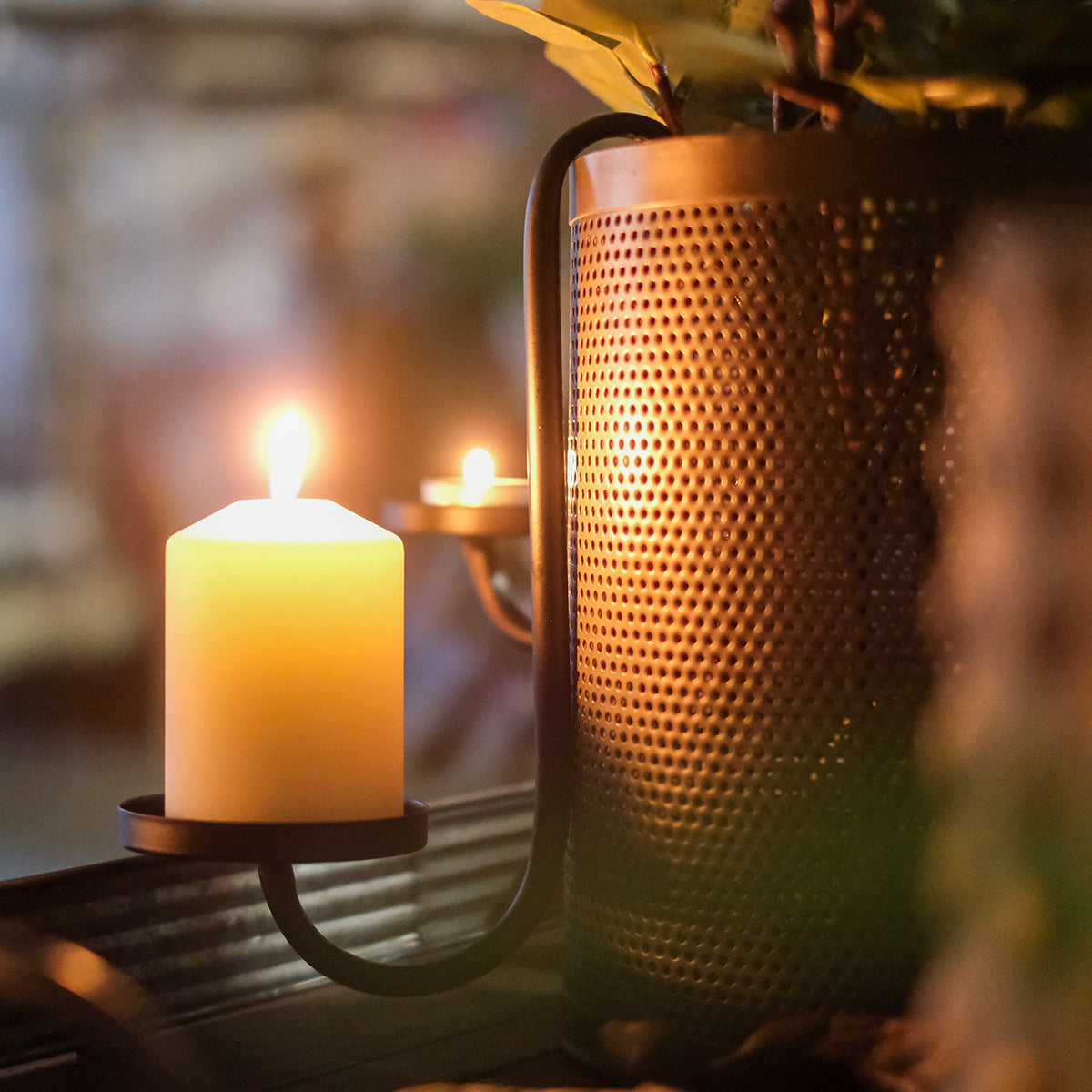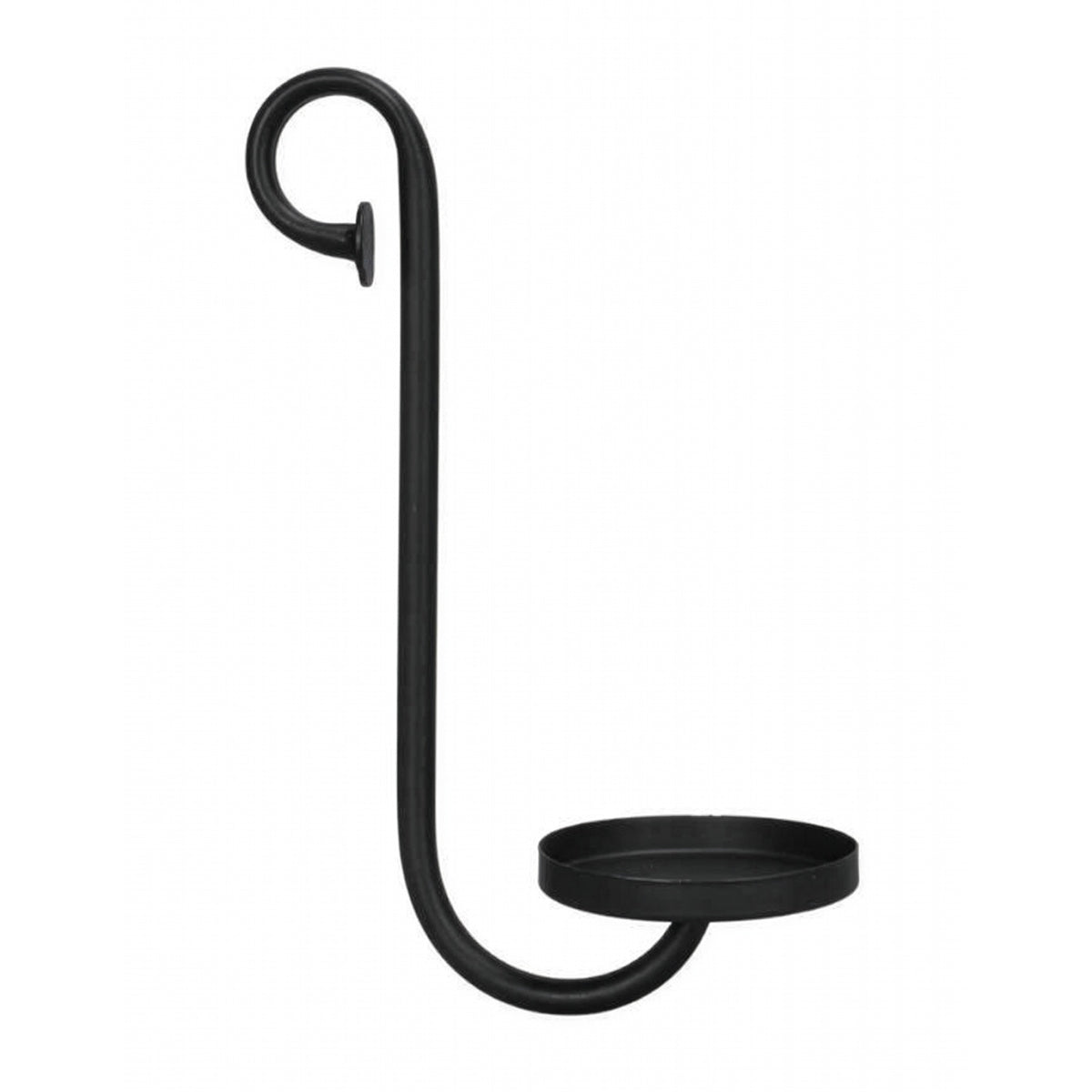 Elegant svart ljushållare i metall som fästs på en kant - exempelvis på en cylinderformad lykta, en rak kruka eller annan tunn avsats.