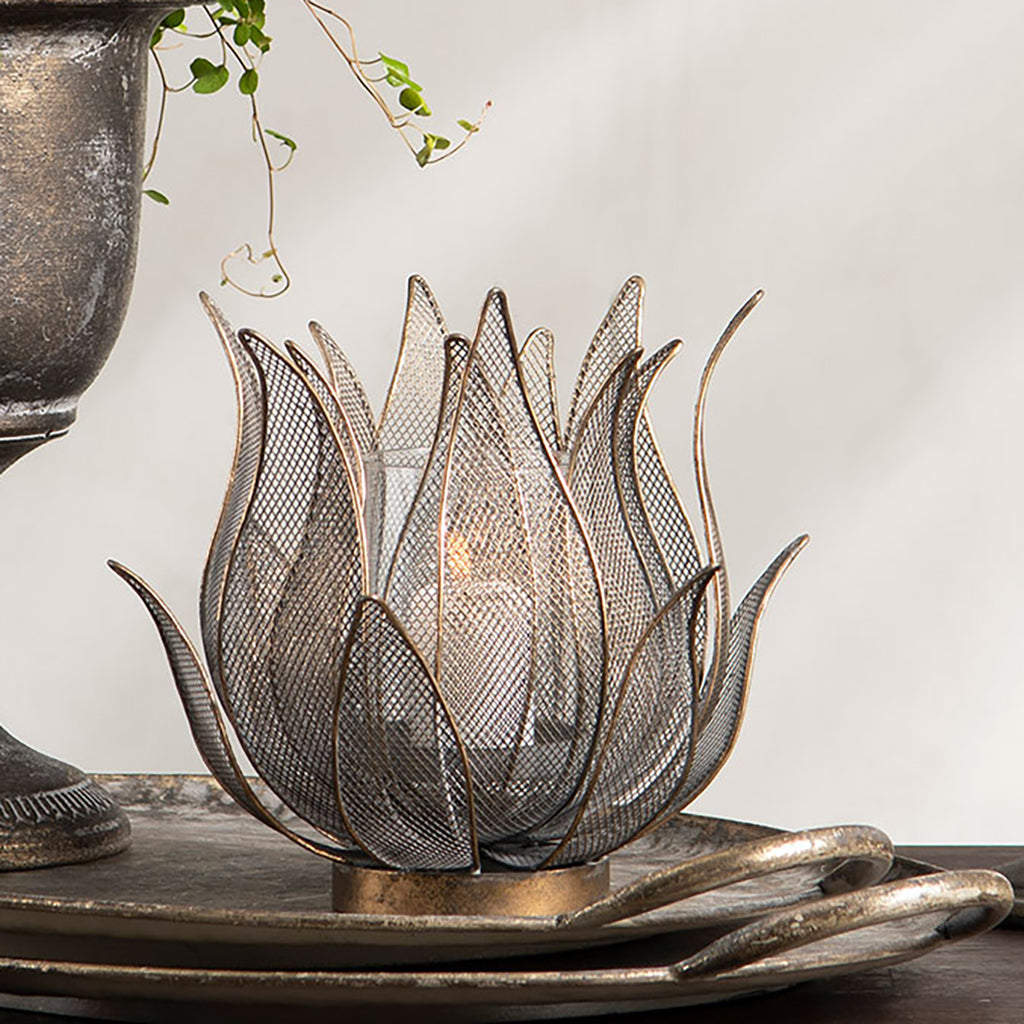 Ljuslykta Grace är en ståtlig mässingljuslykta anpassad för block- eller värmeljus.