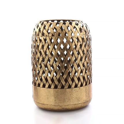 Den här lyktan är mer än bara en ljuskälla – den är ett stämningsskapande konstverk. Det flätade metallen släpper igenom ljuset på ett sätt som skapar ett varmt, levande mönster runtomkring.