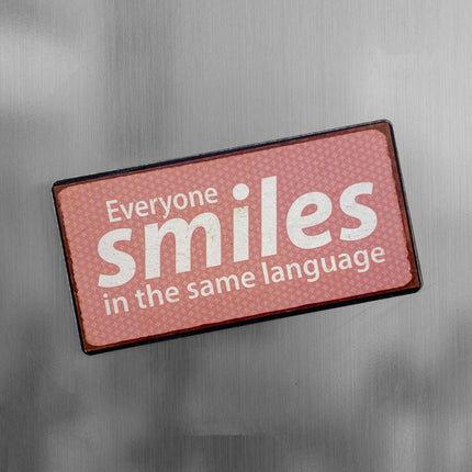 Charmig magnet med texten Everyone smiles in the same language".