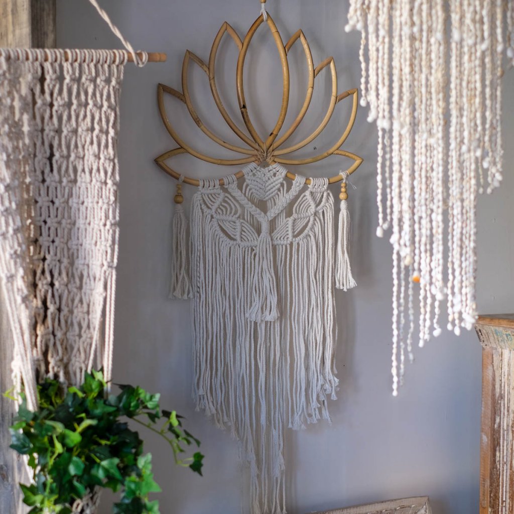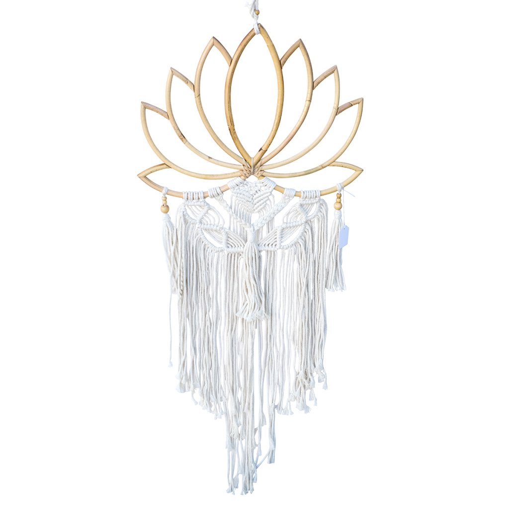 Denna vackra makramé med handgjord bamburam föreställande en lotusblomma skapar en fridfull och naturlig atmosfär i vilket rum som helst!