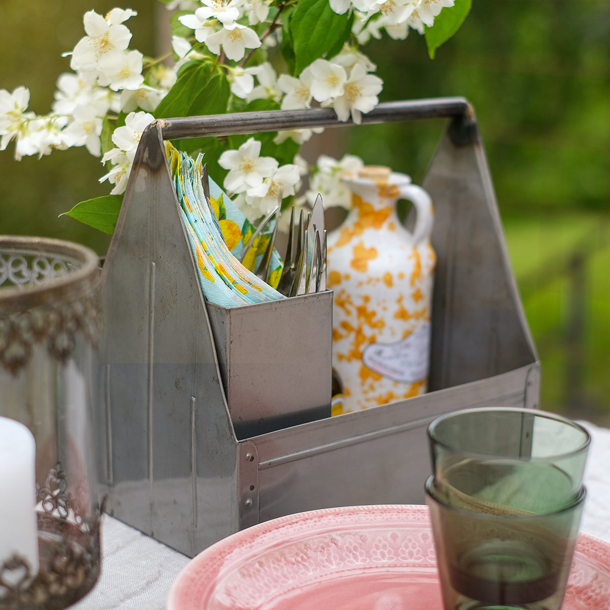Tuff metallåda med handtag i fin finish. Perfekt på köksbänken för bestick, servetter och tillbehör!