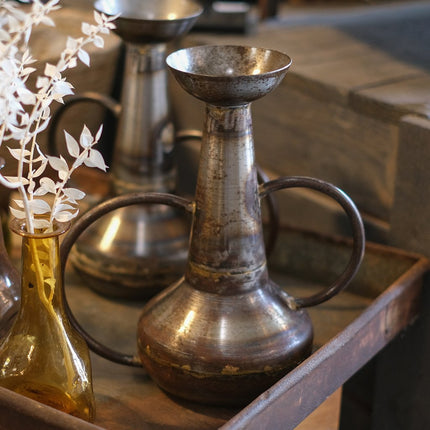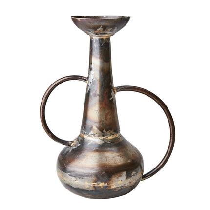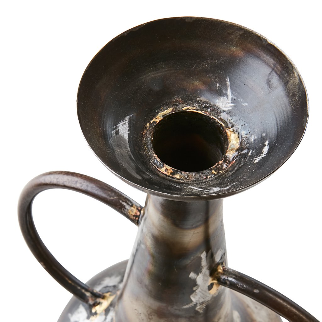Superhäftig och coolt formgiven vas med i rå metallfinish med synliga svetsfogar och läcker patina.