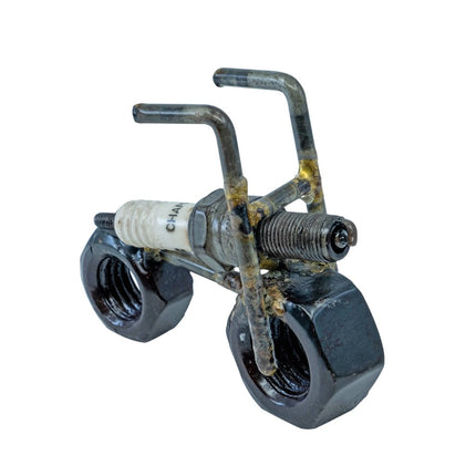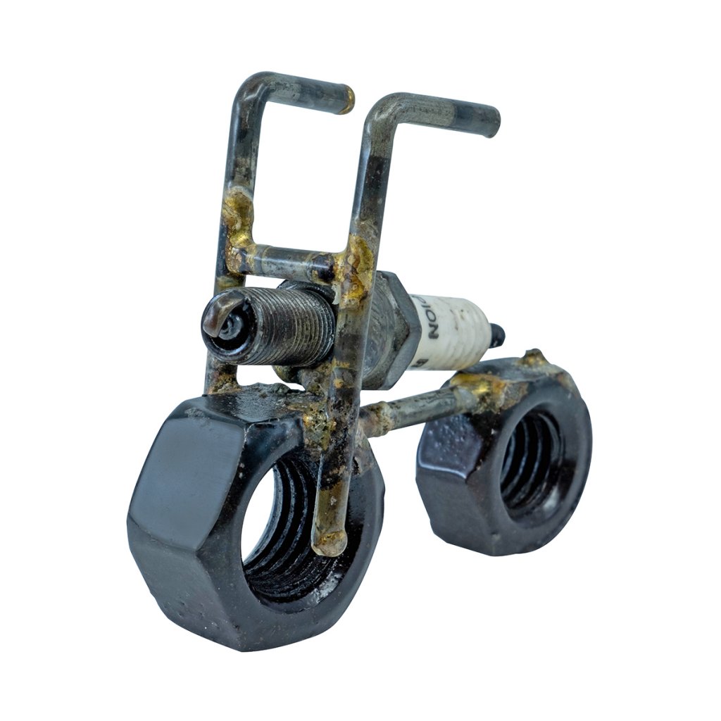 Älskar vår tuffa MC tillverkad av återvunna skruvar, bultar och annan metalljunk.