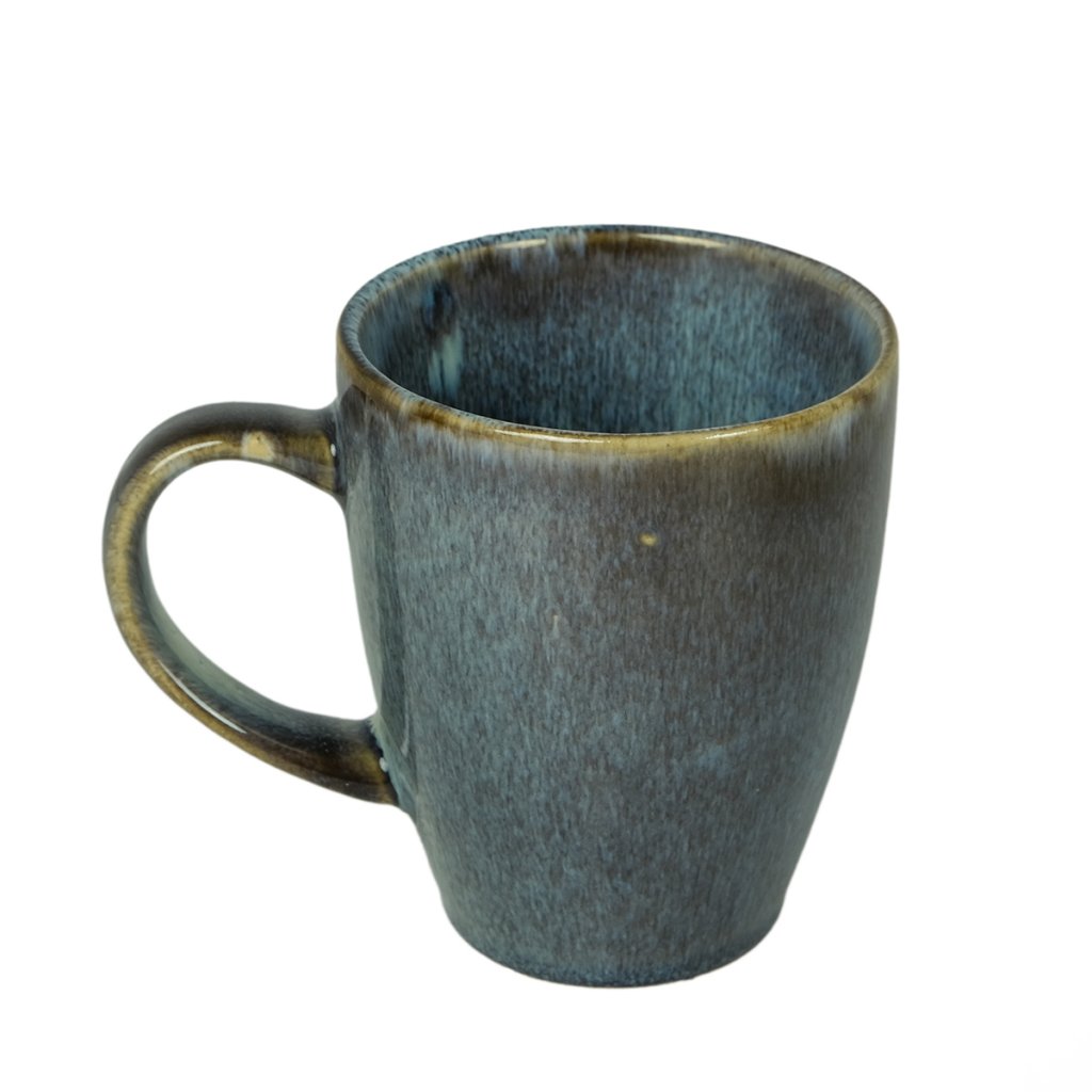 En stilren mugg i stengods med en levande glasyr som skiftar i färg och nyans. Perfekt för morgonkaffet, kvällsteet eller en paus mitt på dagen. Varje mugg är unik, med små variationer i glasyr och ton som ger en handgjord känsla.