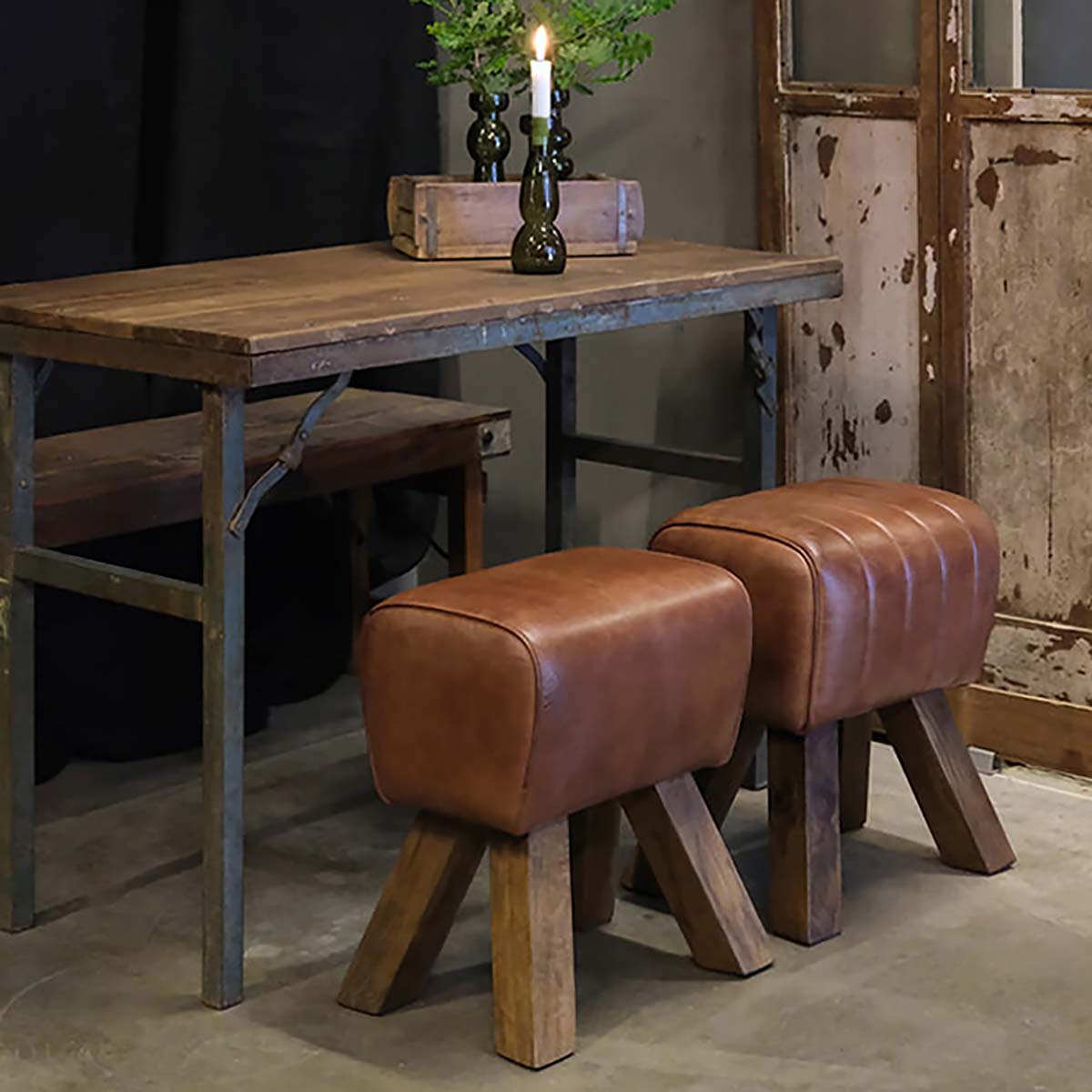 Upptäck vår supertuffa pall i läder, inspirerad av gymnastikbocken och designad med en retro touch som passar perfekt i industriella miljöer. Denna unika möbel är ett riktigt blickfång som kommer att fånga uppmärksamheten i vilken miljö den än placeras i.