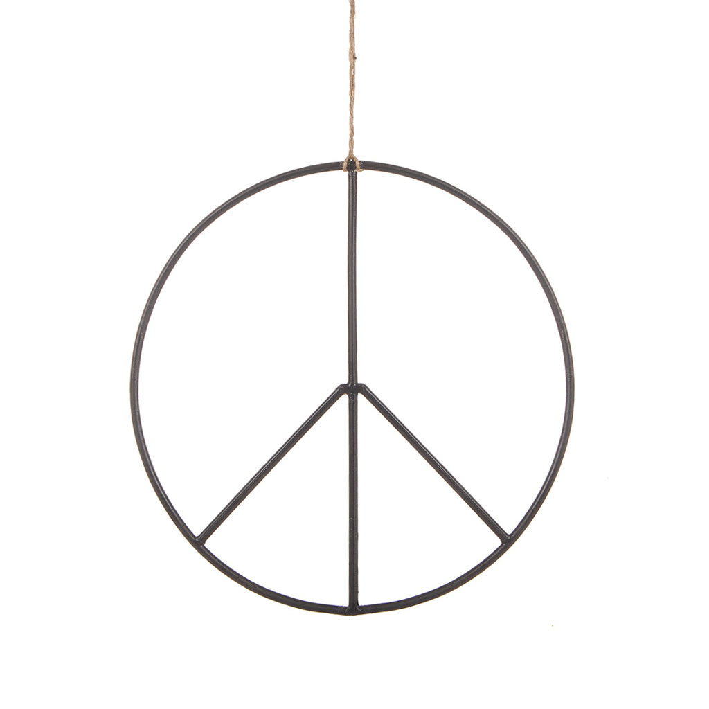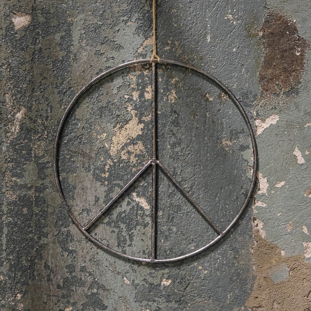 Peace-symbol i ofärgad smide (kan upplevas som svart på bilden).