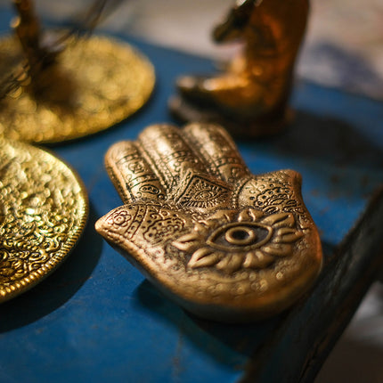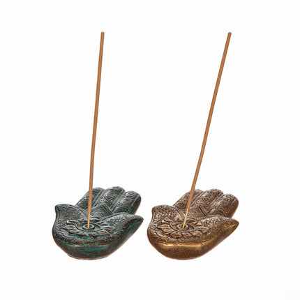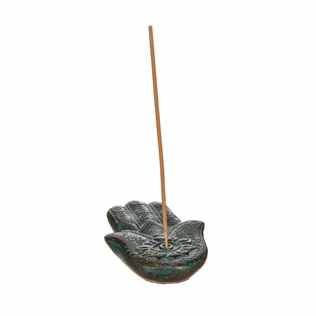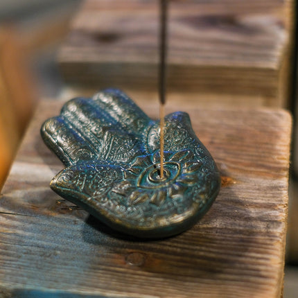 Mysig rökelsehållare i form av en detaljrik hand.