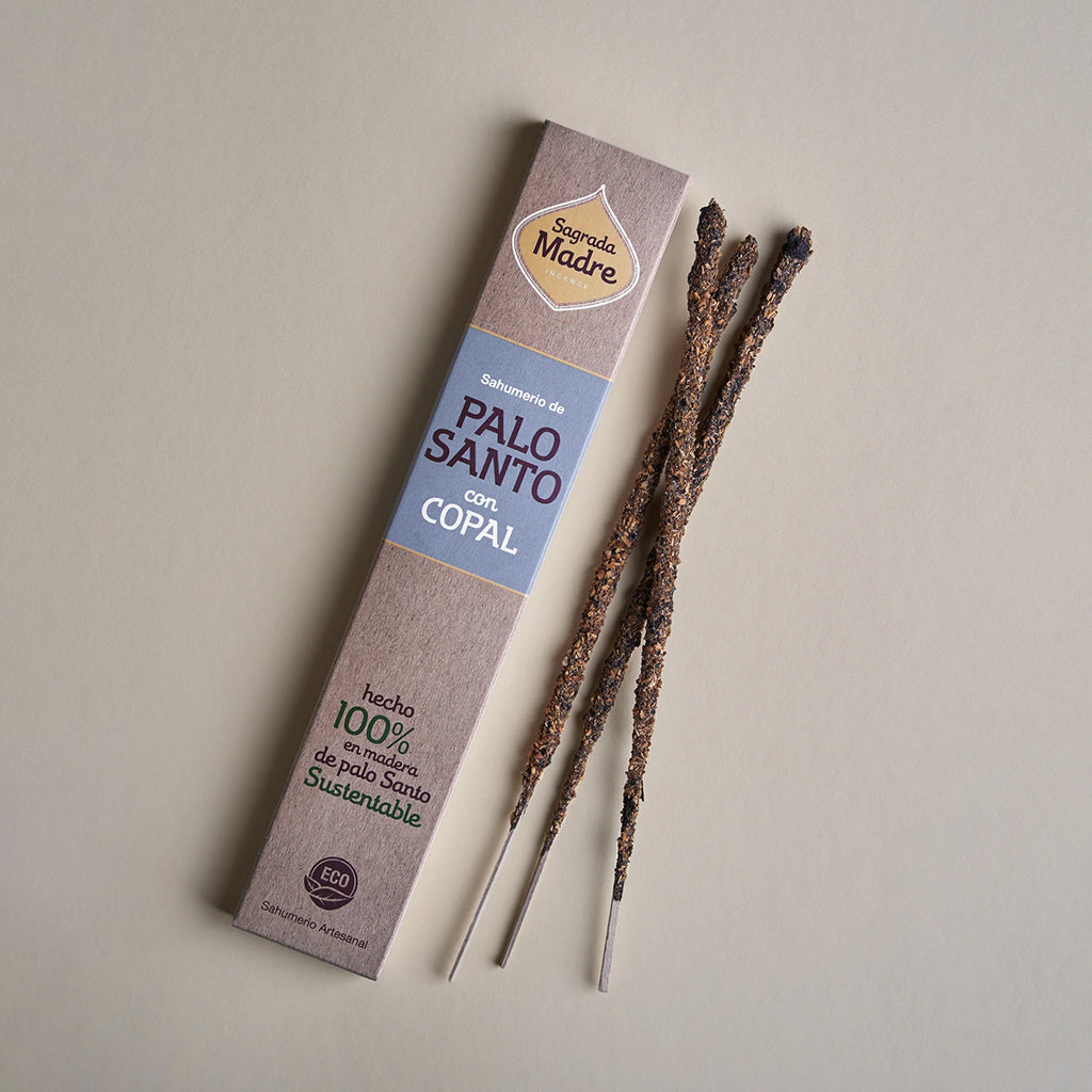 Denna rökelse förenar Palo Santo med Copal, ett harts som kommer från ett av Amazonas och Mexikos mest mytomspunna träd. Copal av peruanskt ursprung är ett aromatiskt harts från Copal-trädet och är känd som jordens rökelse" i Central- och Sydamerika. I forntida Maya- och Inkakulturer användes röken för att rena platser och människor, öka överflöd och ansluta till gudomliga energier.