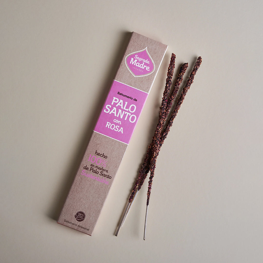 Det renande heliga träet, Palo Santo kombinerat med kärlekens symbol, rosor. Doften av de torkade rosenbladen skänker en känsla av romantik och poesi.