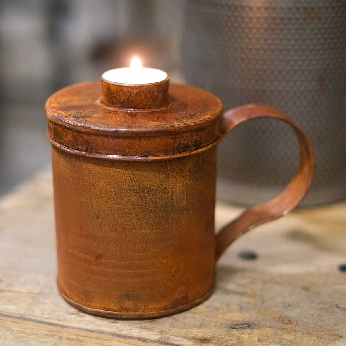 Rostig burk värmeljus