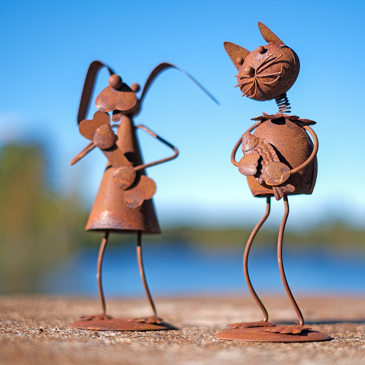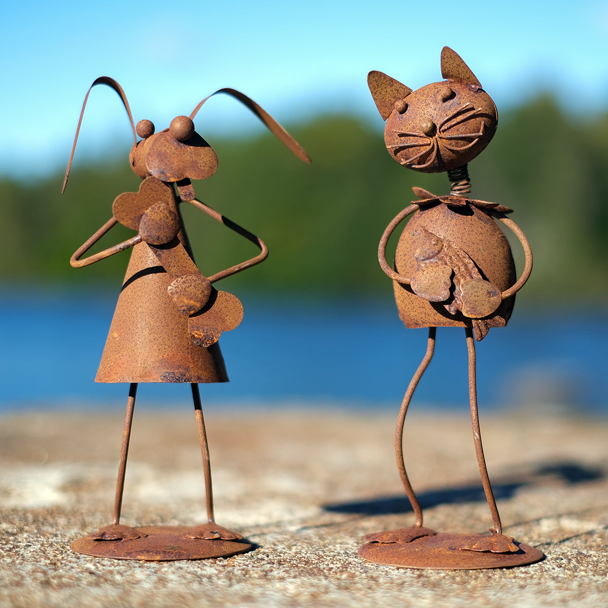 En dekoration i rostig metall som sprider både leenden och lite kattig attityd.