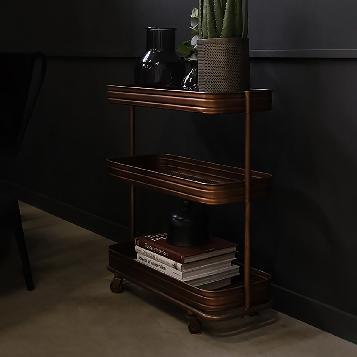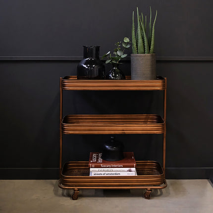 Med tre hyllplan ger den gott om utrymme för dina saker. Den är perfekt för användning i köket för att organisera dina köksredskap, på kontoret för att hålla skrivbordsaccessoarer i ordning eller i badrummet för att lagra handdukar och toalettpapper. Denna mångsidiga vagn kan användas i hela hemmet och är ett utmärkt val för alla som vill ha en robust och funktionell lösning för förvaring.