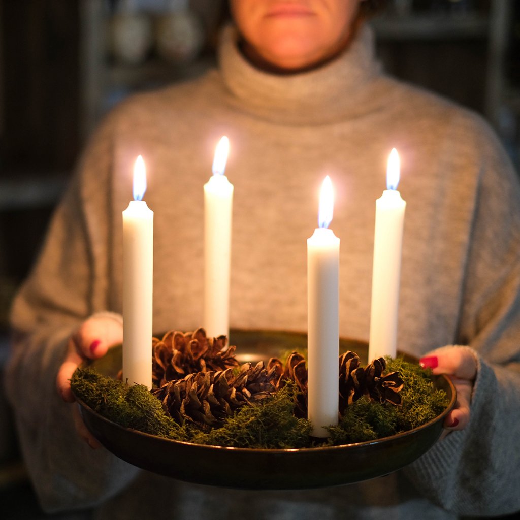 Rund bricka för fyra ljus