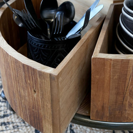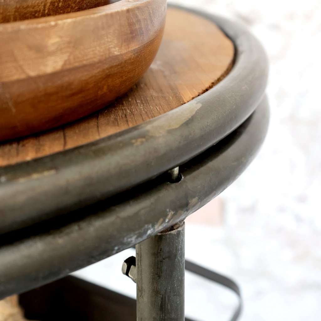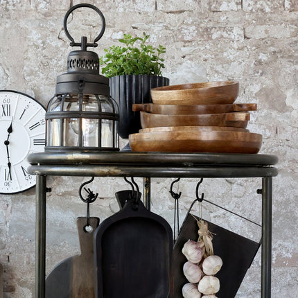 Den rustika designen i återvunnet trä och antiksvart järn ger vagnen en tidlös karaktär som passar både i moderna och lantliga miljöer. Oavsett om du använder den i köket, badrummet eller vardagsrummet, blir den ett originellt tillskott som kombinerar förvaring med ett dekorativt inslag.