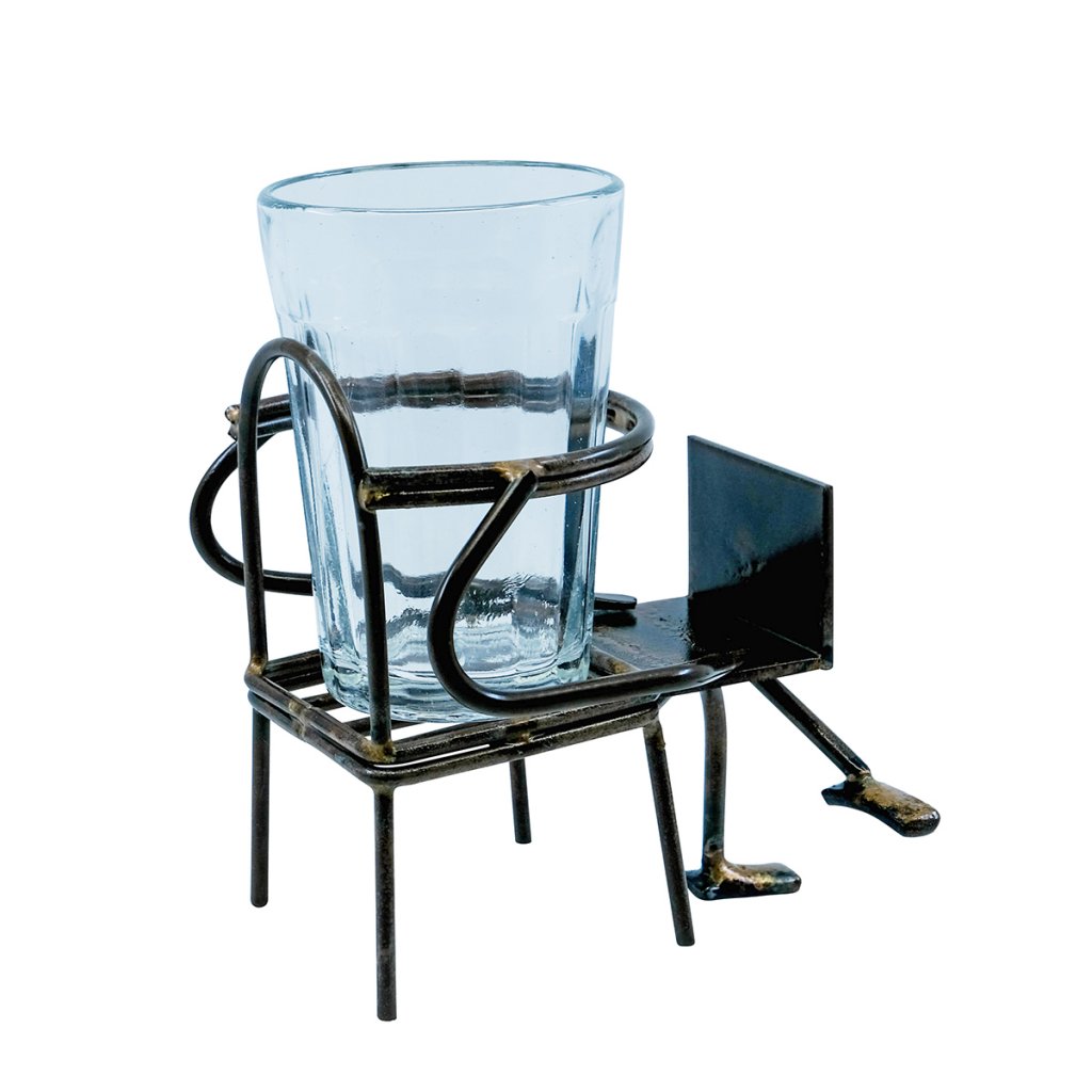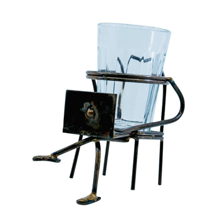 Våra indiska vänner har tillverkat den här underbara chaiglas-gubben som sitter och vickar på en stol med datorn i knäet. Fantastisk va?