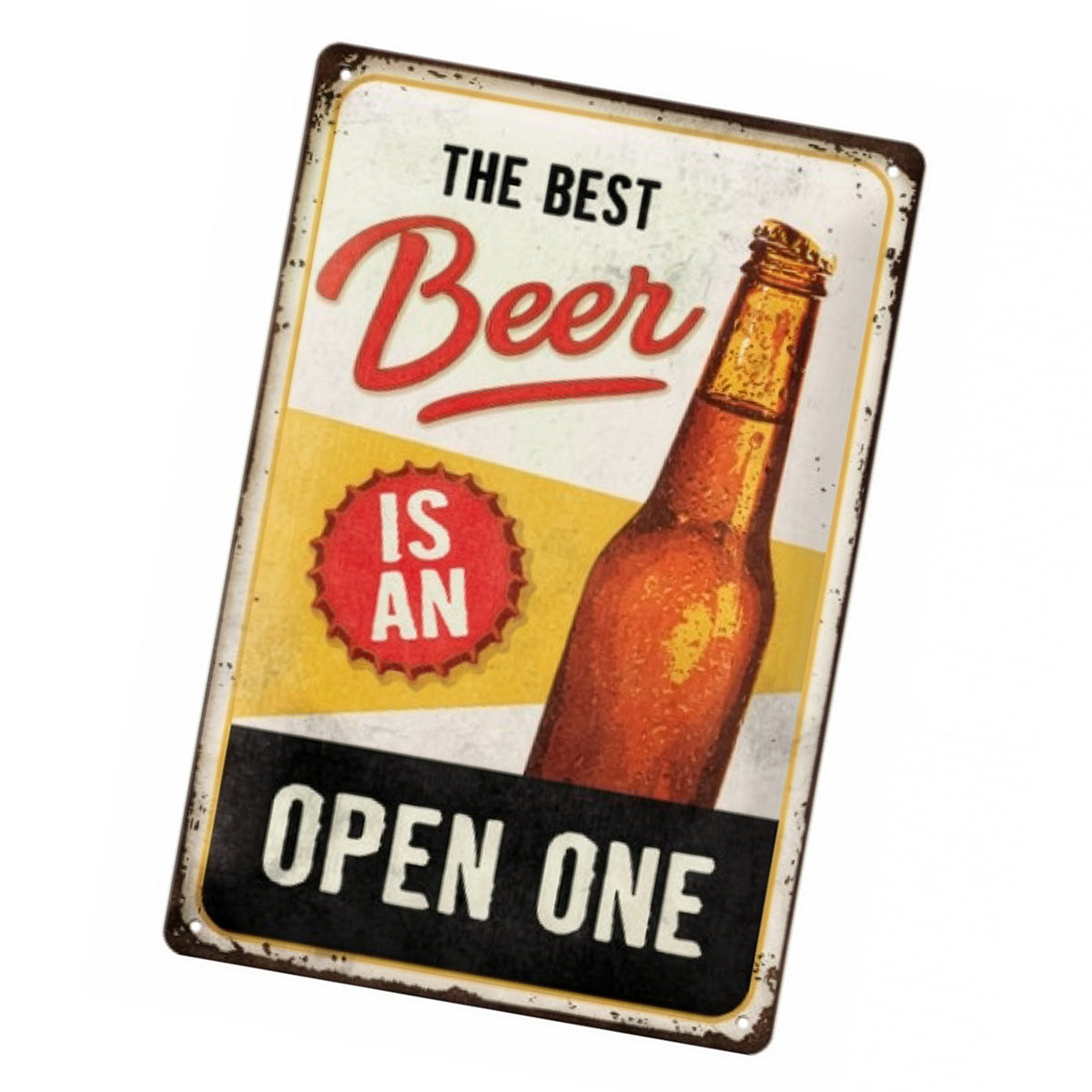 En skylt med humor och självklar logik - för alla som vet att den bästa ölen är den som redan är öppnad. Med sin slitna retrolook, varma färger och klassiska flaskillustration passar den perfekt i baren, köket eller garaget.