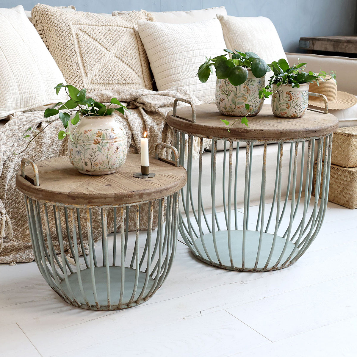 Borden fungerar inte bara som soffbord utan erbjuder också praktisk förvaring. Bordsskivan kan lyftas av, och insidan av varje bord kan användas till att förvara kuddar, filtar eller andra saker du vill ha nära till hands men ur synhåll.