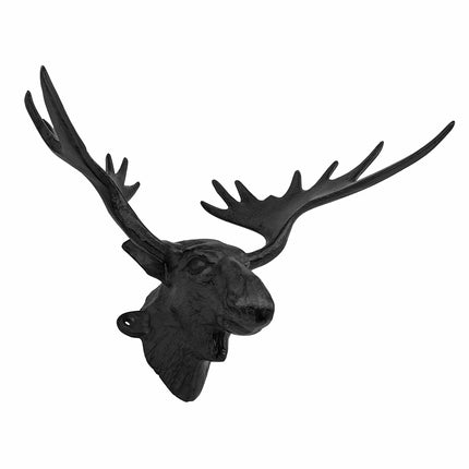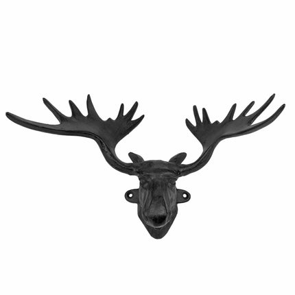 En rejäl väggkrok i form av skogens konung - så ståtlig att den nästan förtjänar egen trofévägg. Tillverkad i tungt gjutjärn och med mäktiga horn som inte bara imponerar, de bär också upp allt från ytterrockar till hundkoppel med kunglig pondus.