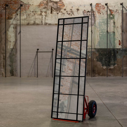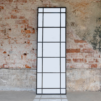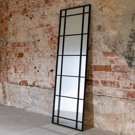 Spegeln kan både hängas eller stå lutad mot en vägg.