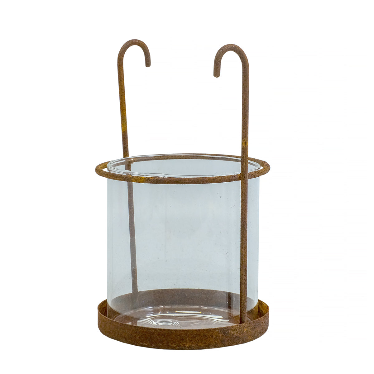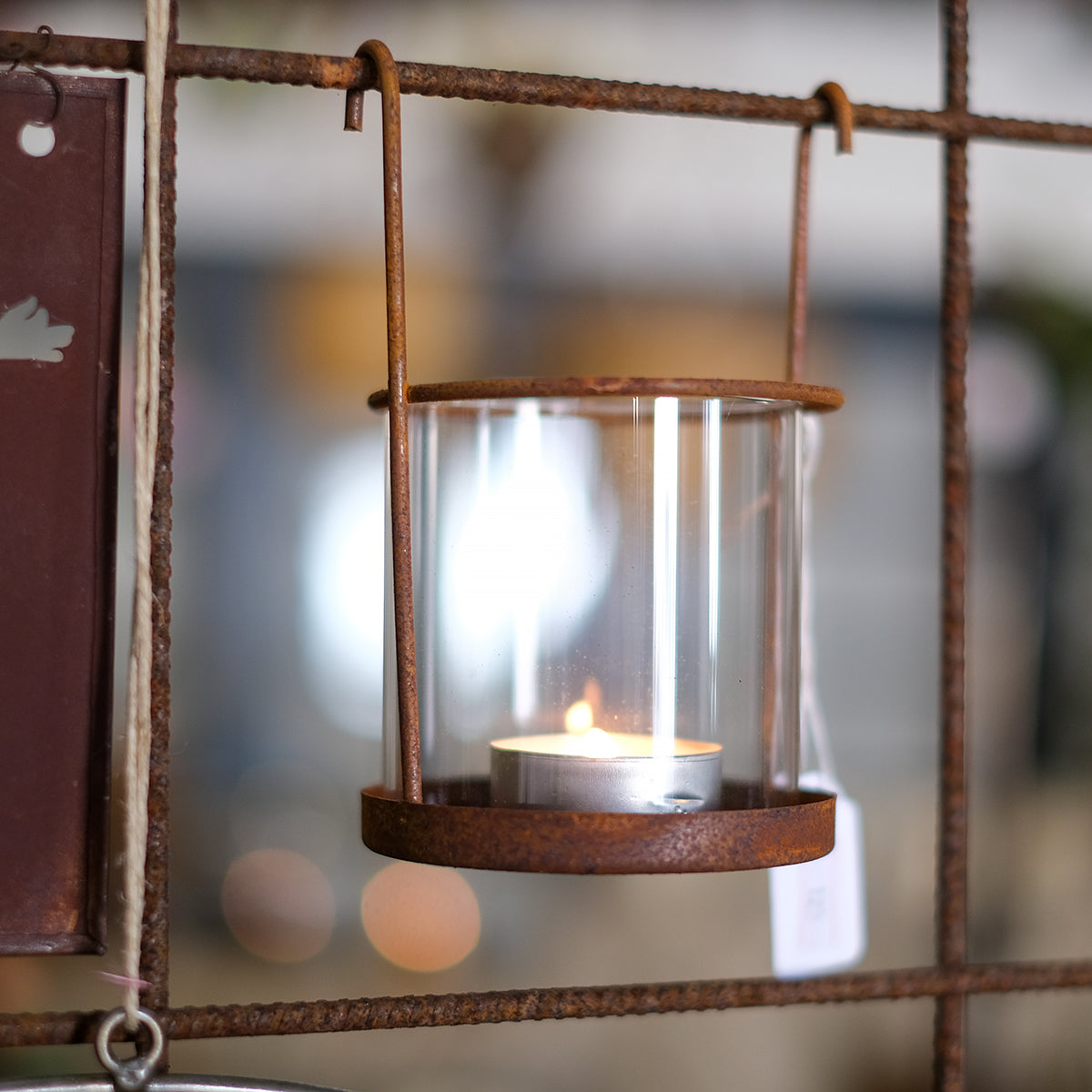 Smart liten stormlykta med glasinsats, utformad för att hängas direkt på armeringsjärn eller nät. Perfekt för att skapa stämning i trädgården när mörkret faller. Konstruktionen gör att den står emot vinden och inte blåser ner i första taget.